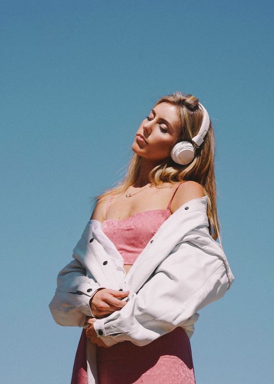• Sit by the window, eyes closed, lost in the song — capture serenity.